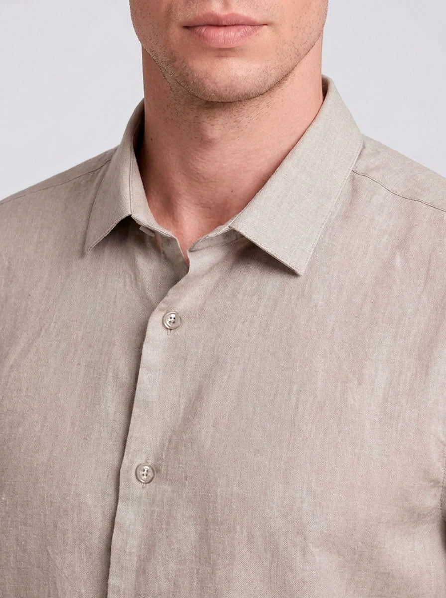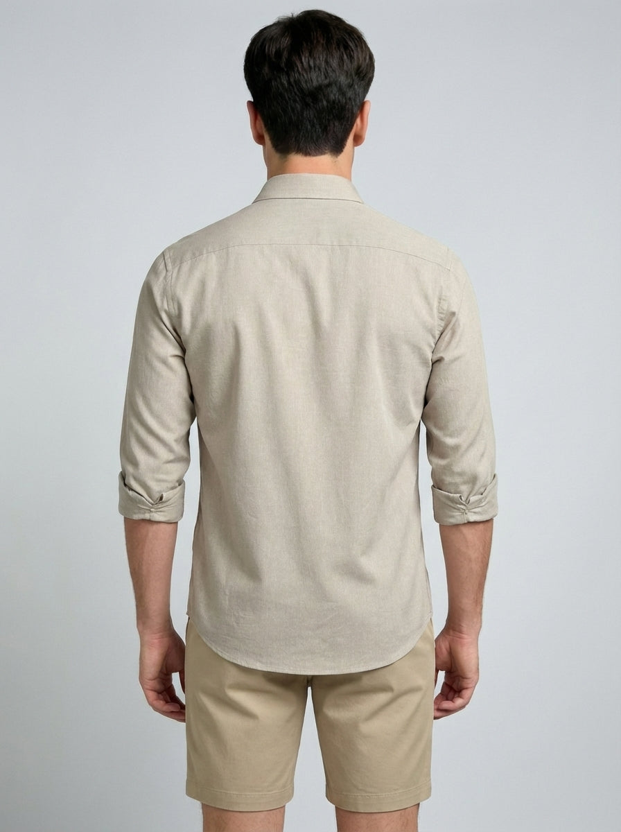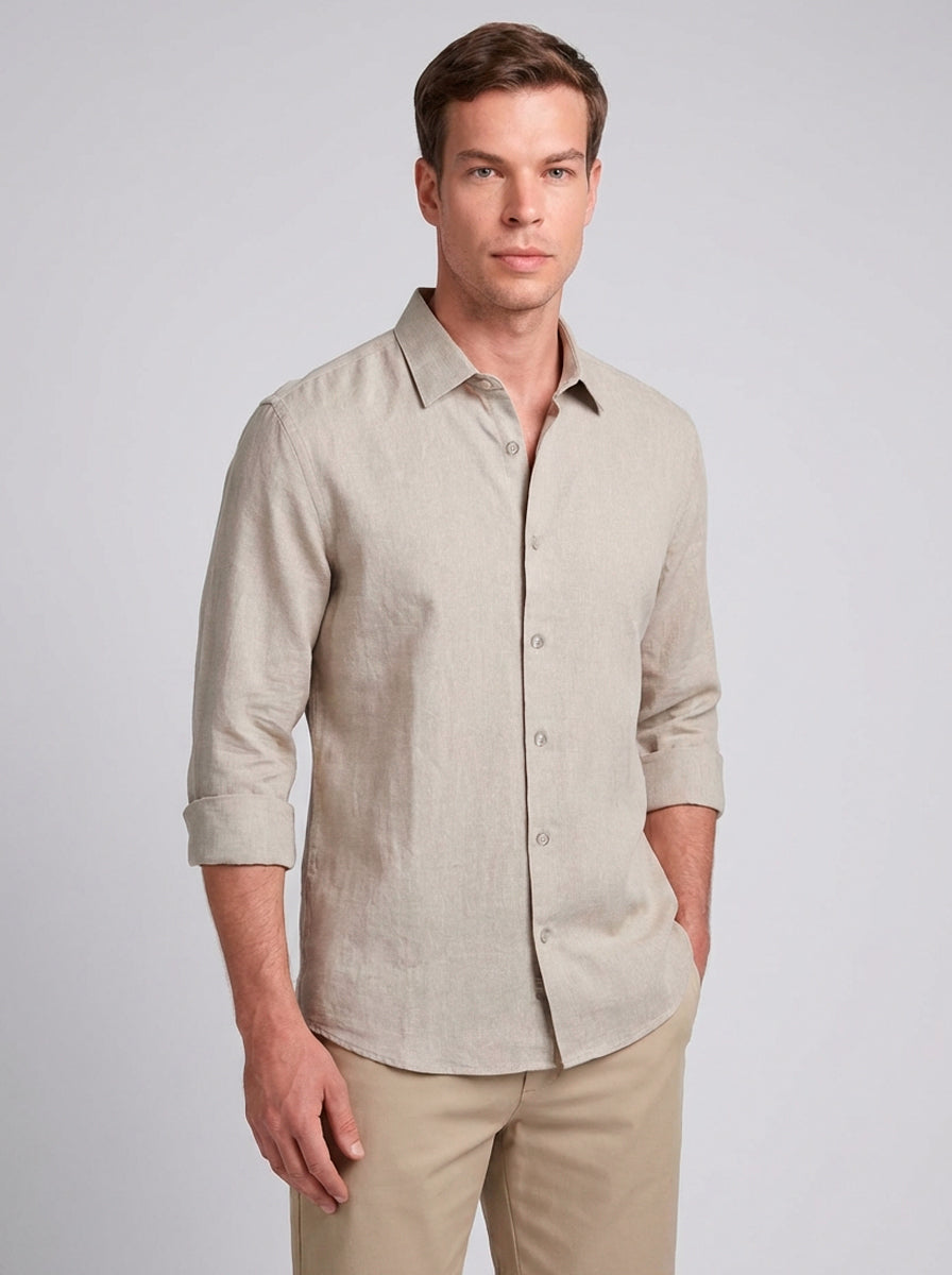 CAMISA M/L CASUAL LINHO MISTO FALSO LISO KAKHI