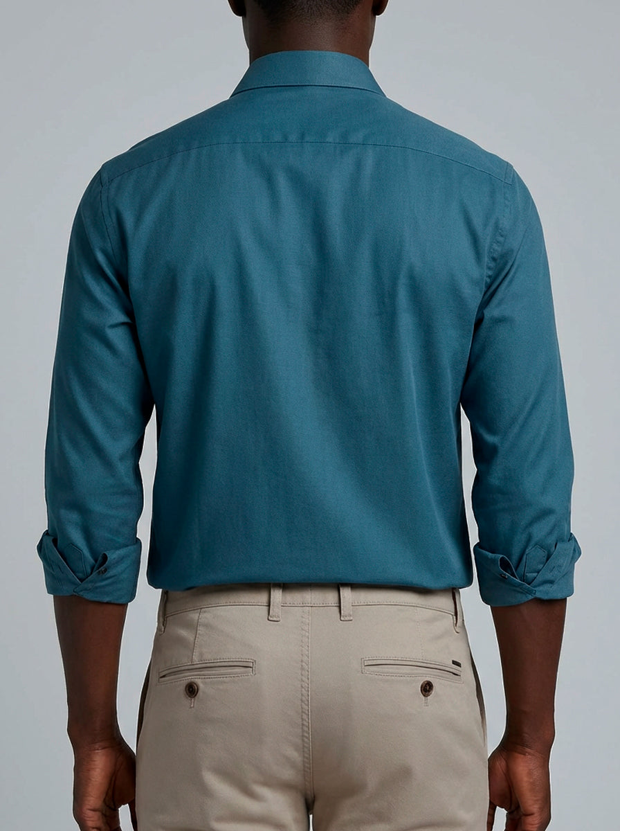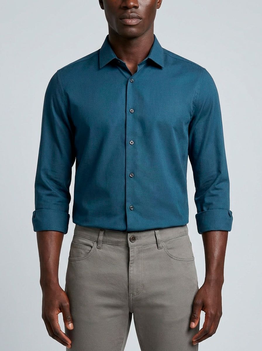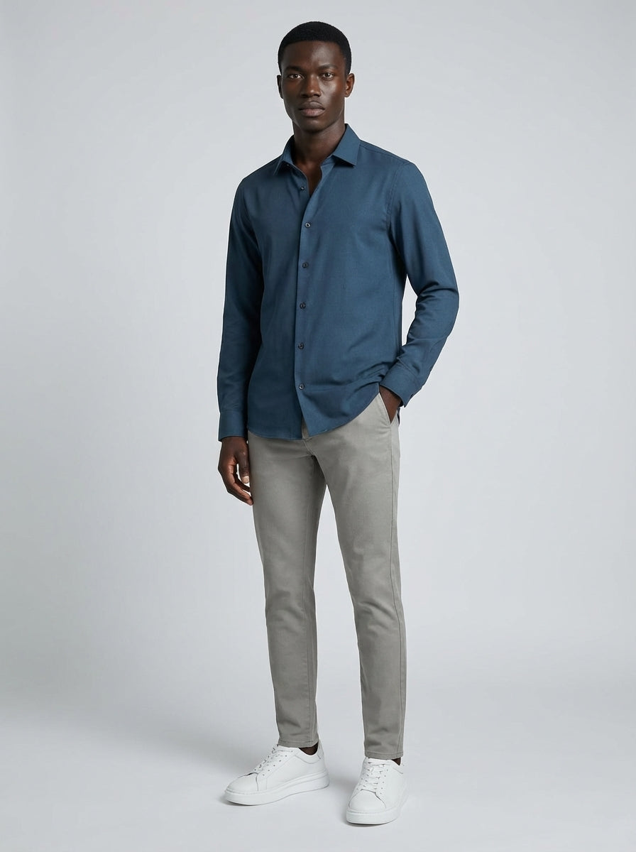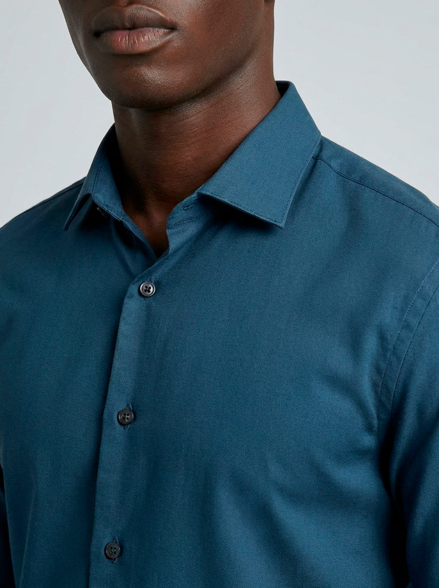 CAMISA M/L CONTEMPORANEA FALSO LISO AZUL ESCURO