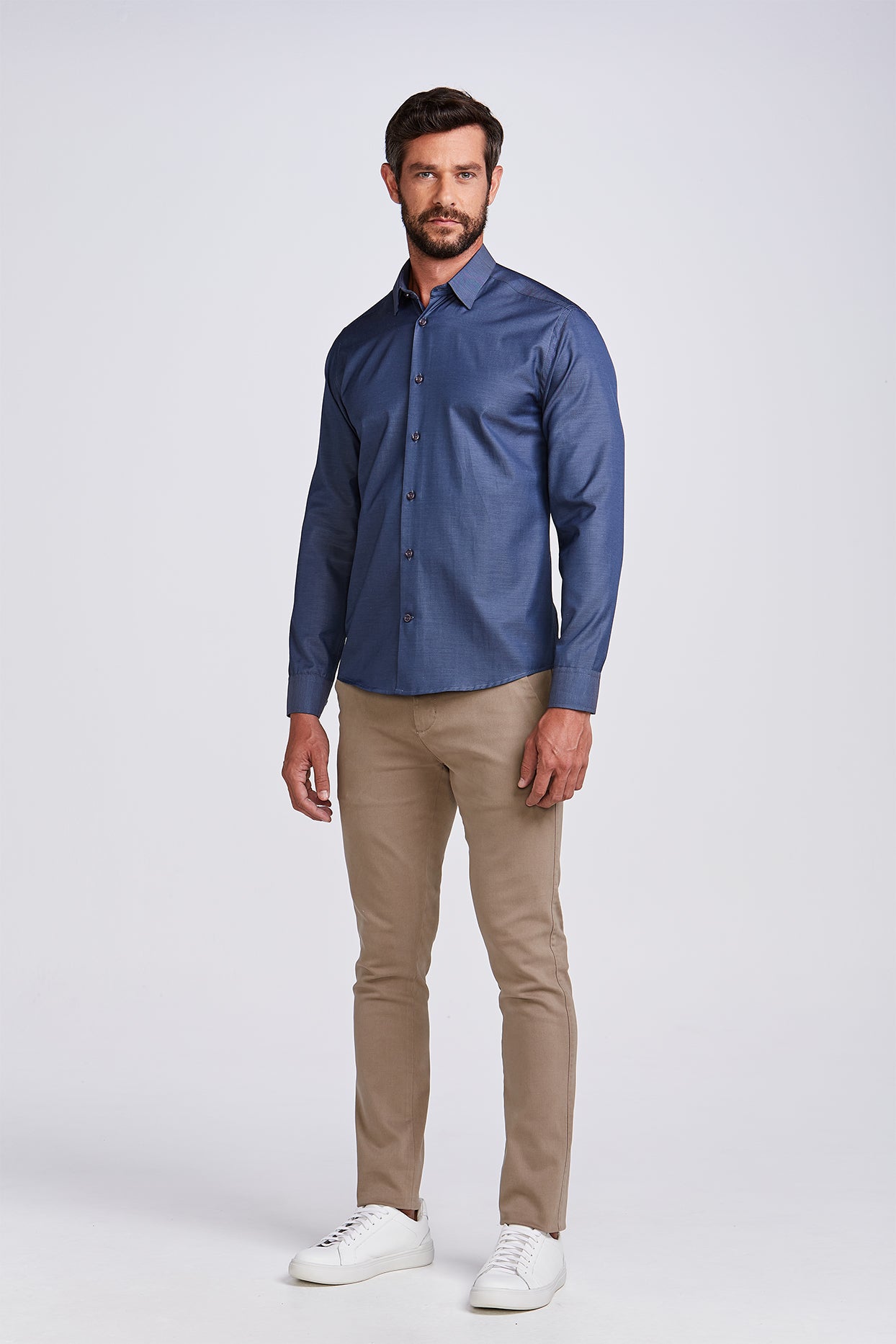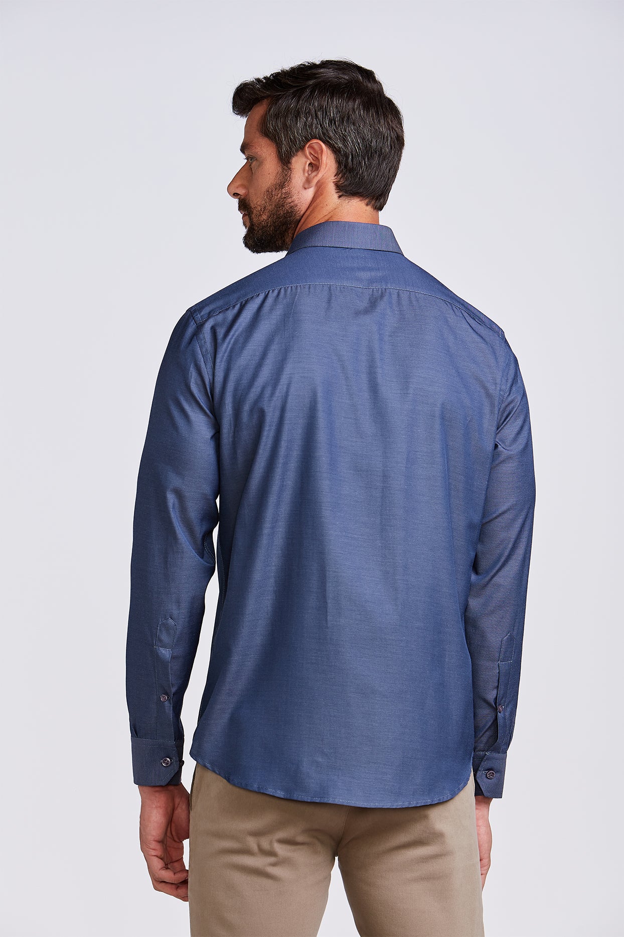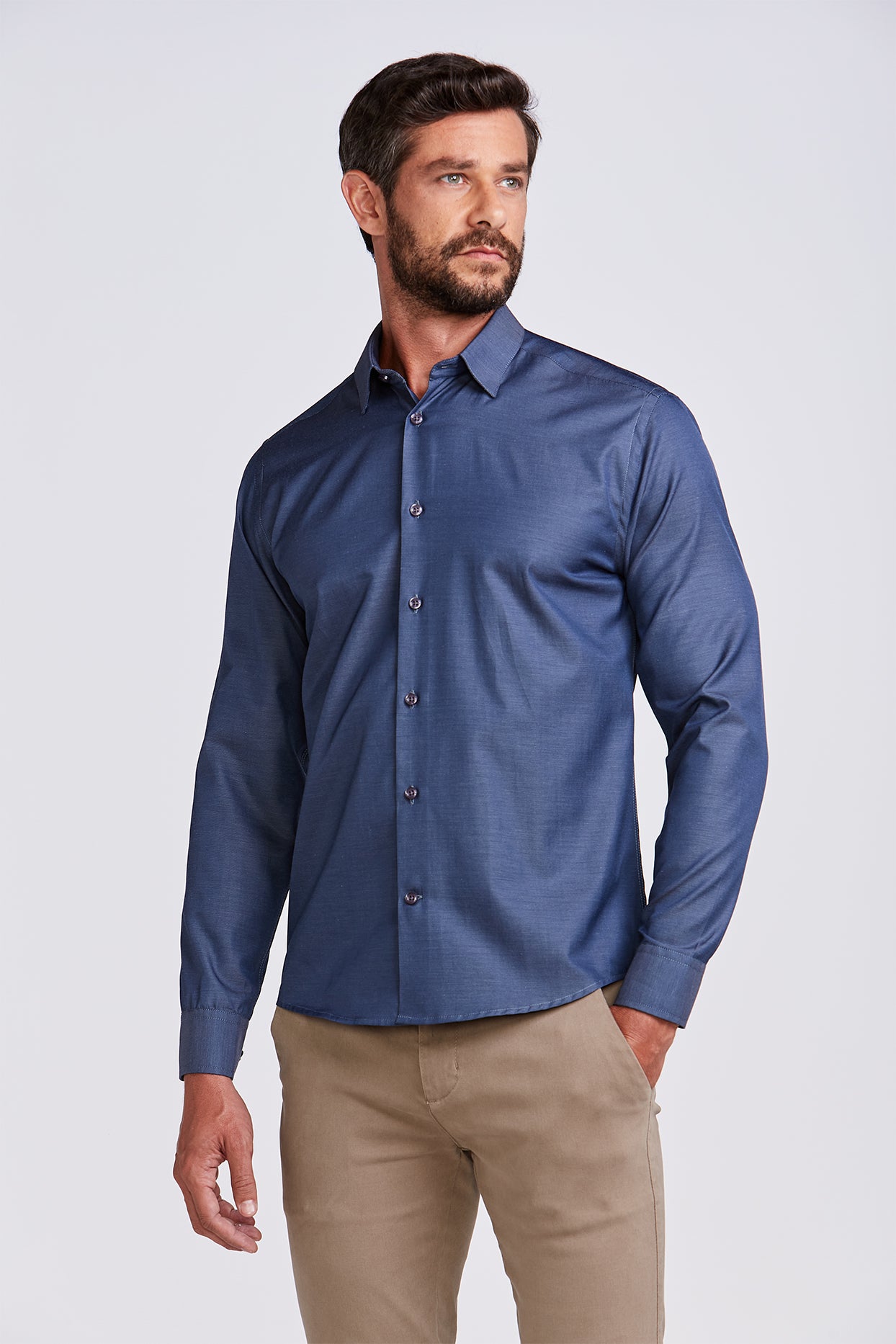 CAMISA M/L CONTEMPORANEO FALSO LISO MARINHO