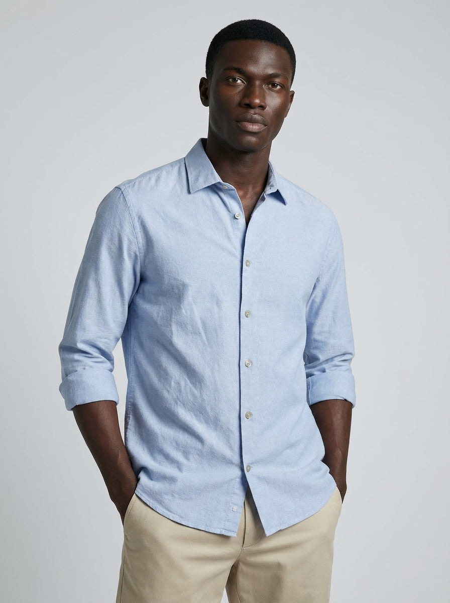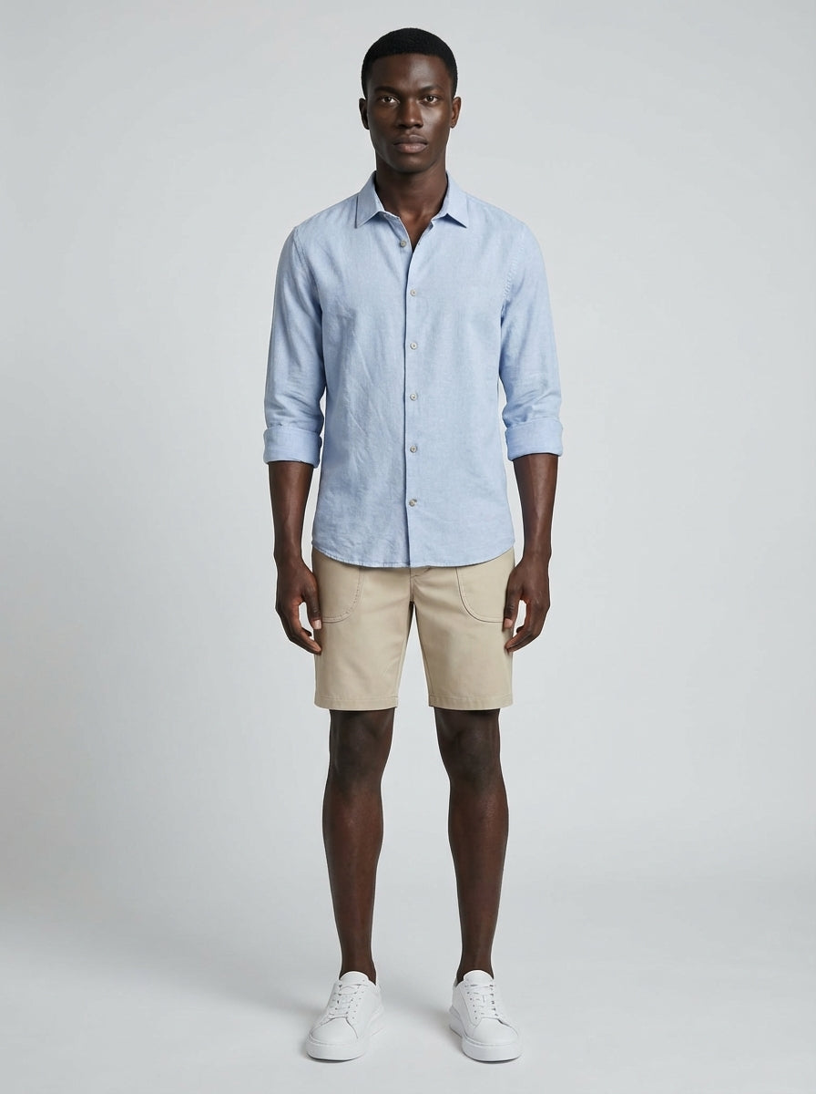 CAMISA M/L LINHO PURO AZUL CLARO