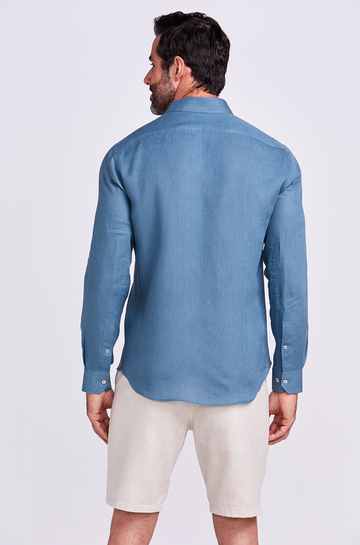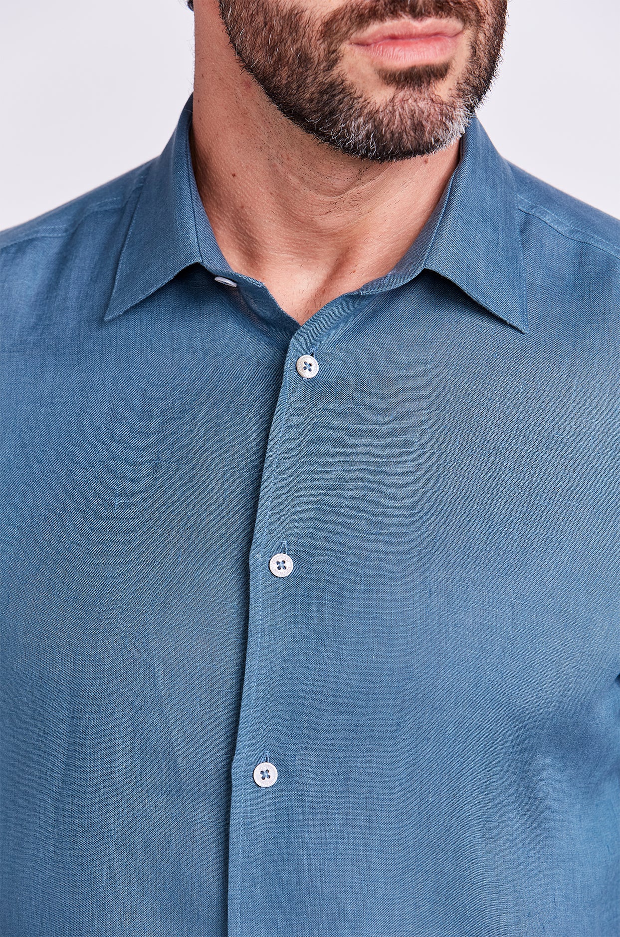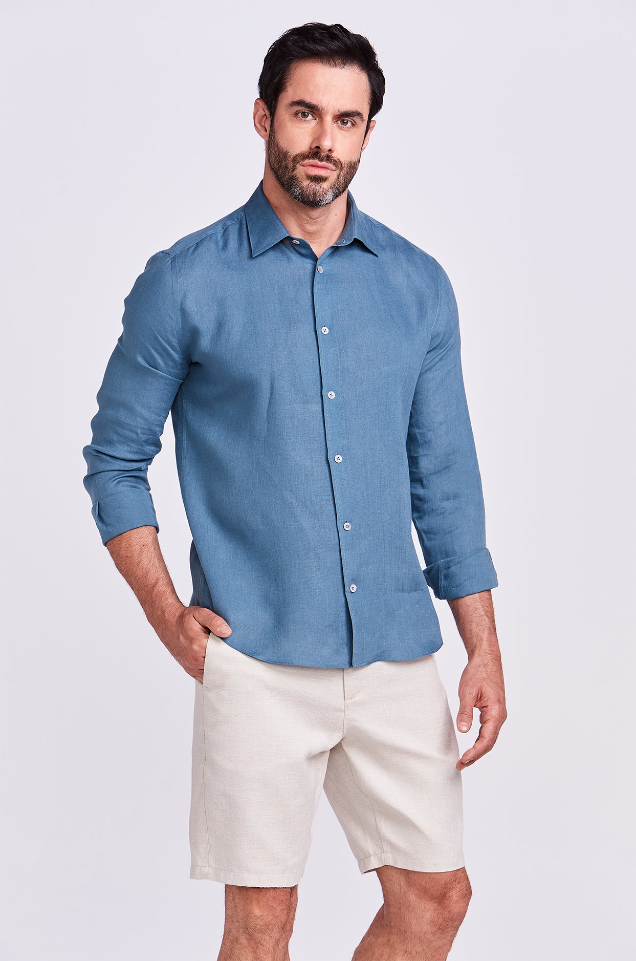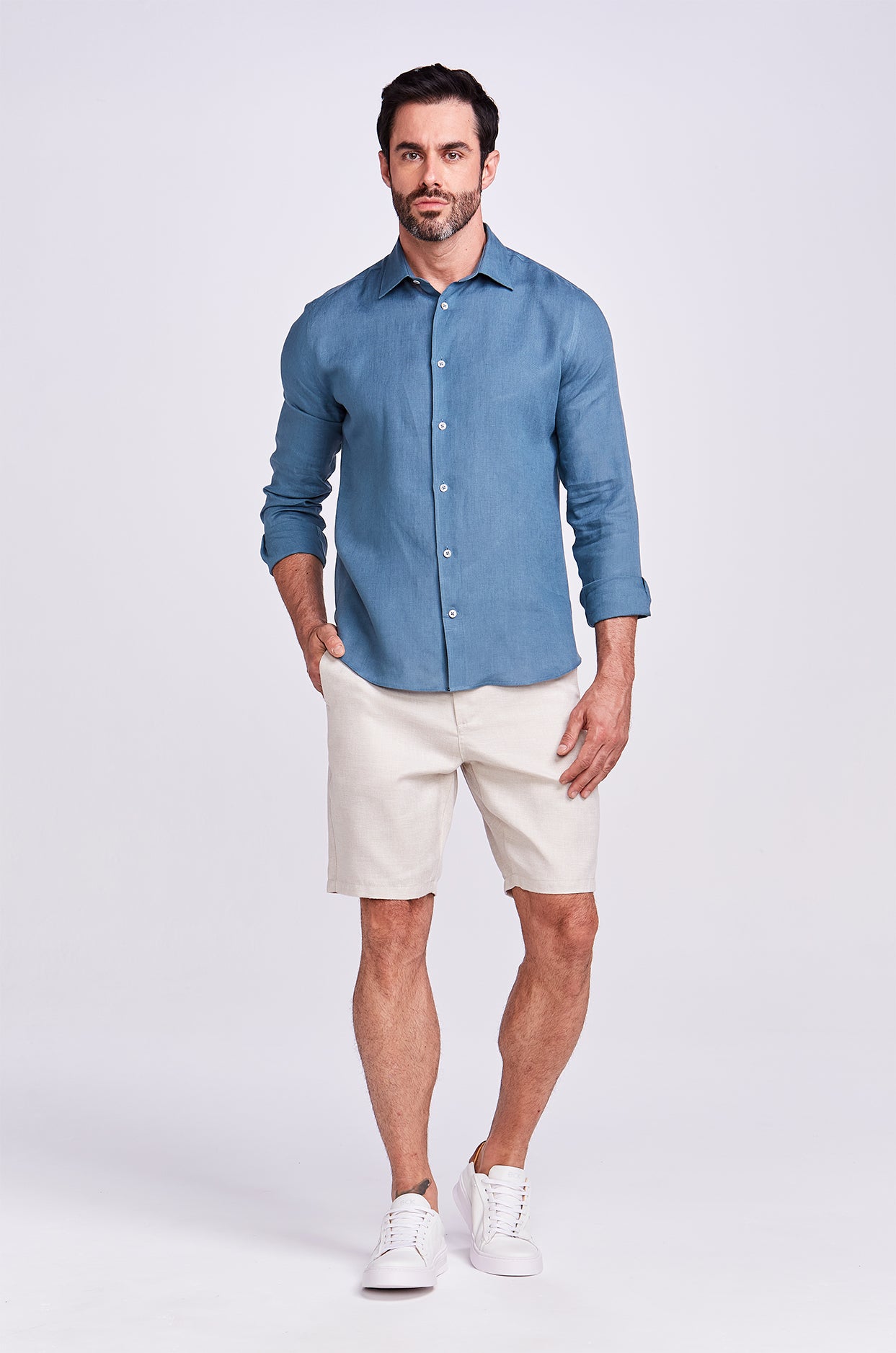 CAMISA M/L CASUAL LINOSO AZUL ACINZENTADO