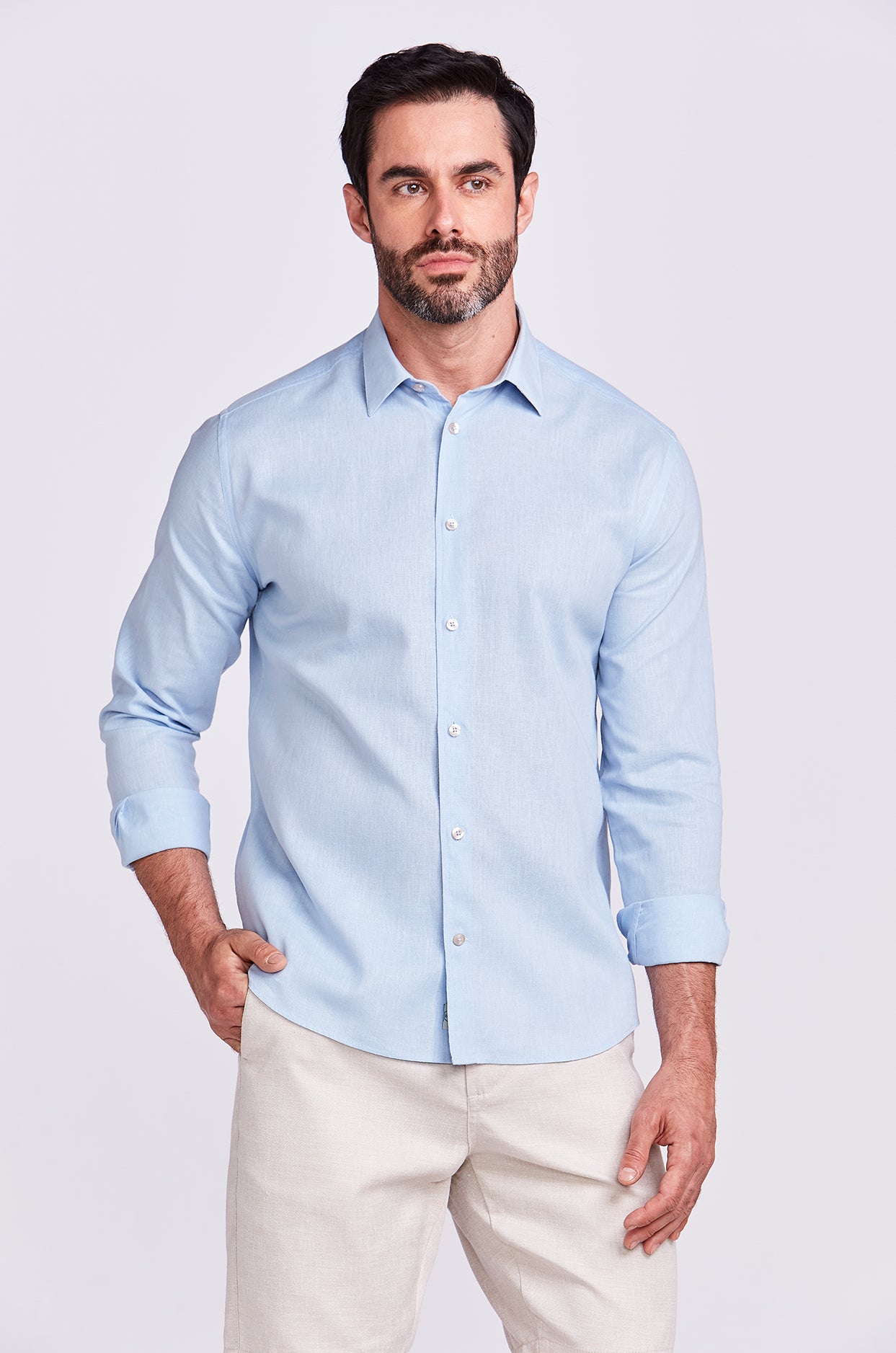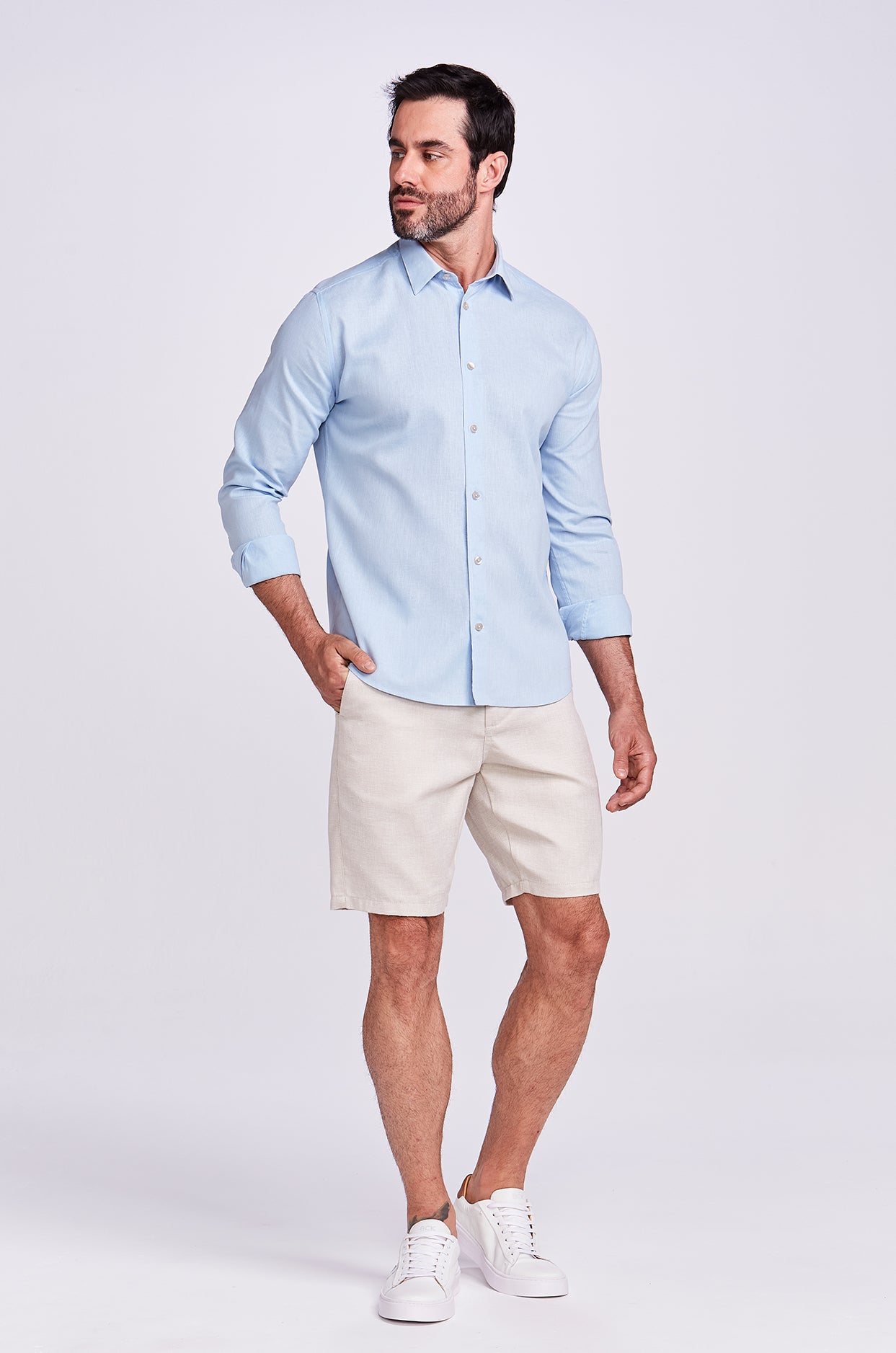CAMISA M/L CASUAL LISA AZUL CLARO
