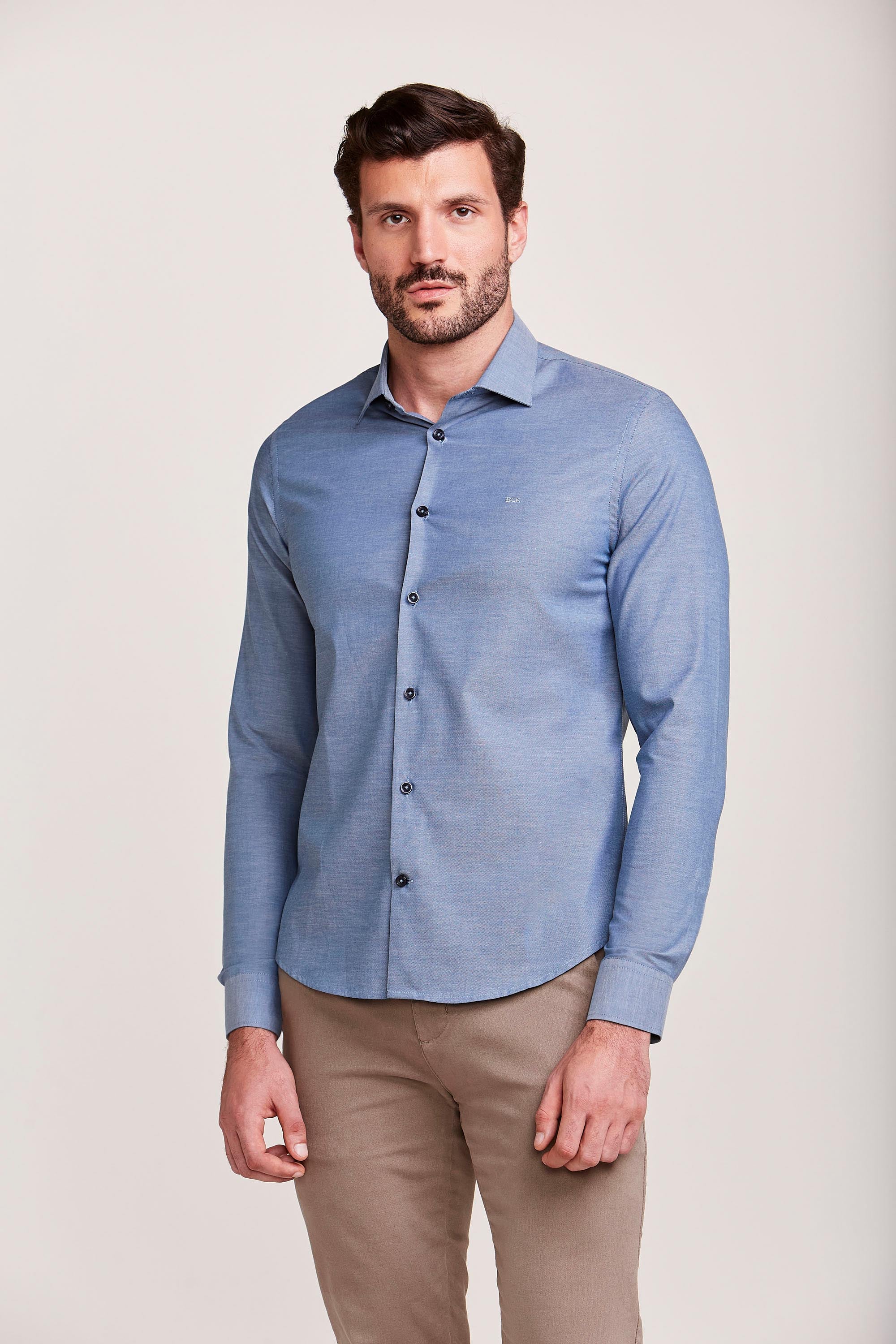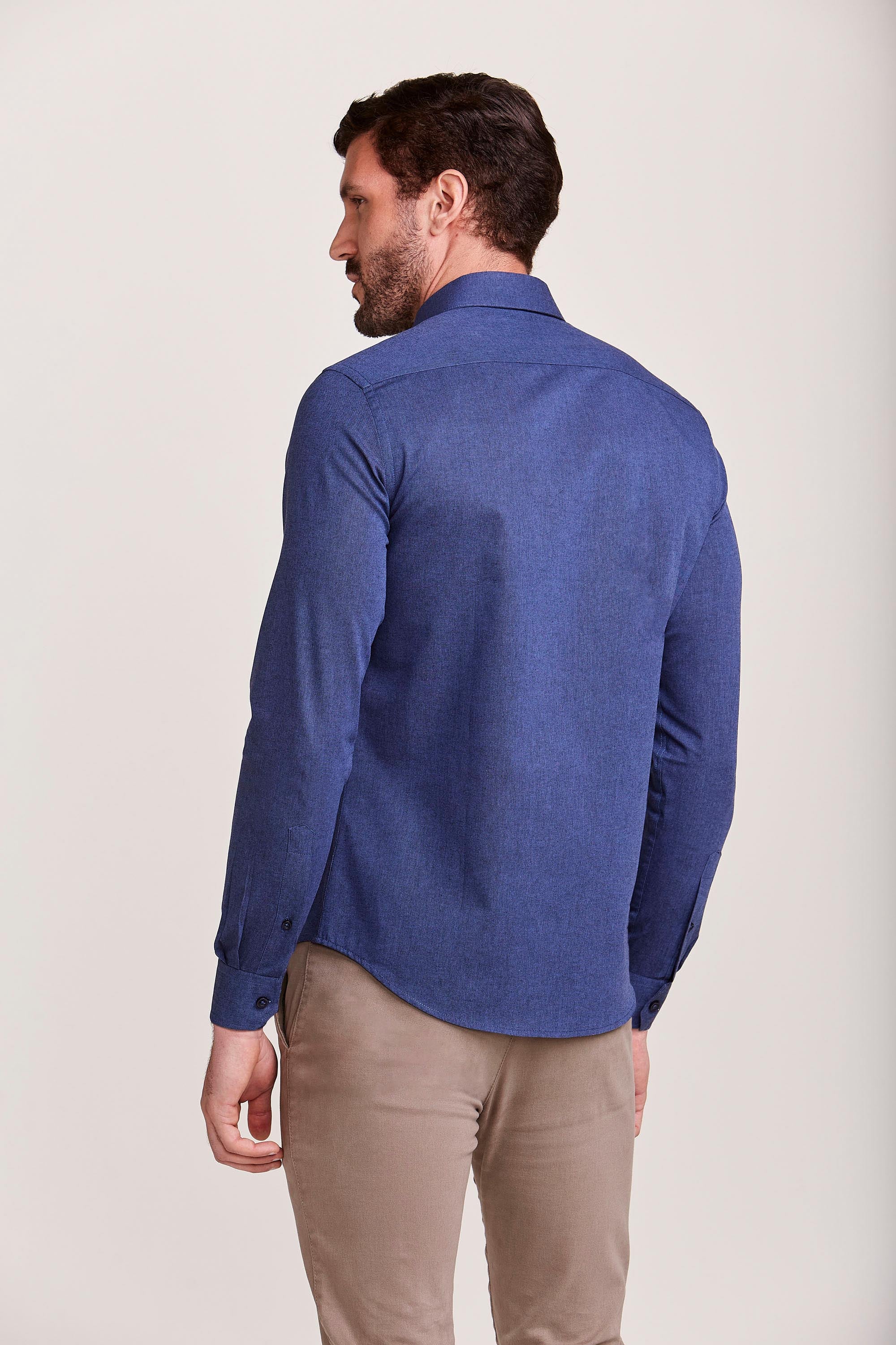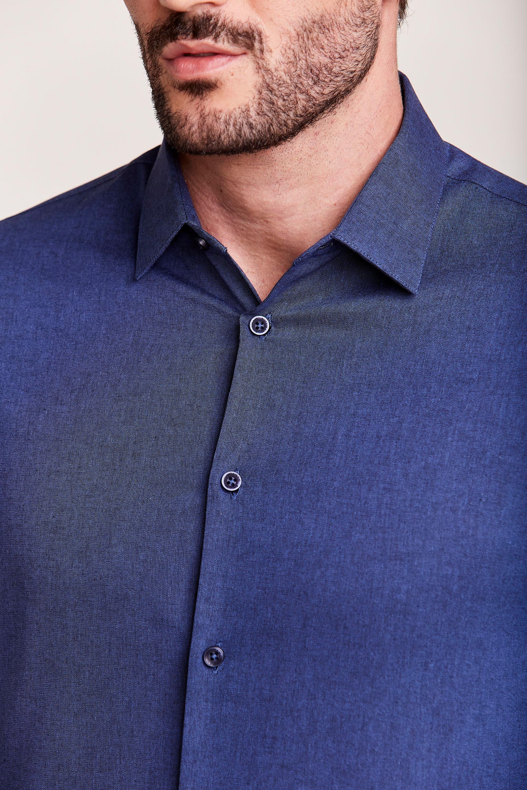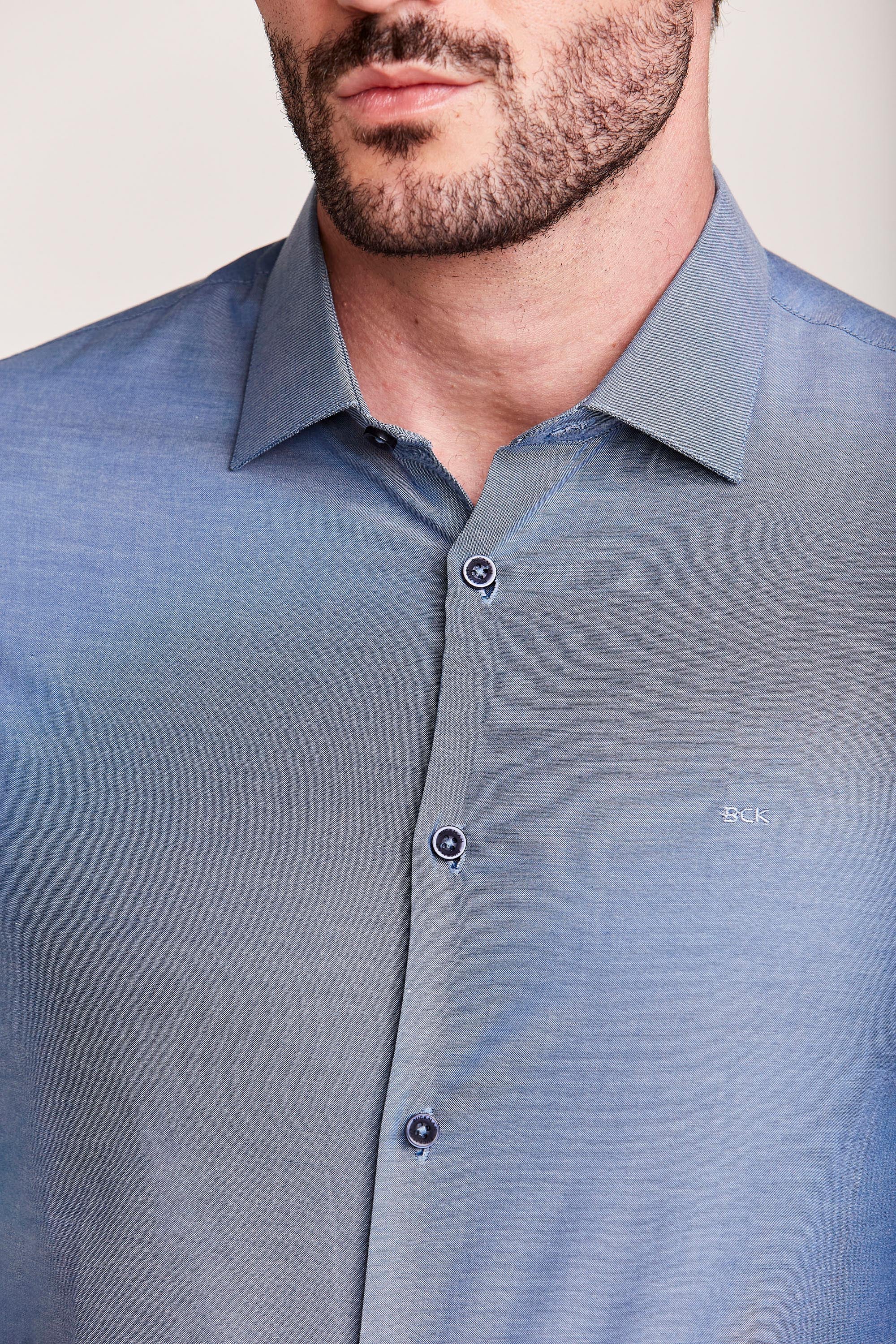 CAMISA M/L CONTEMPORÂNEA FIO TINTO AZUL