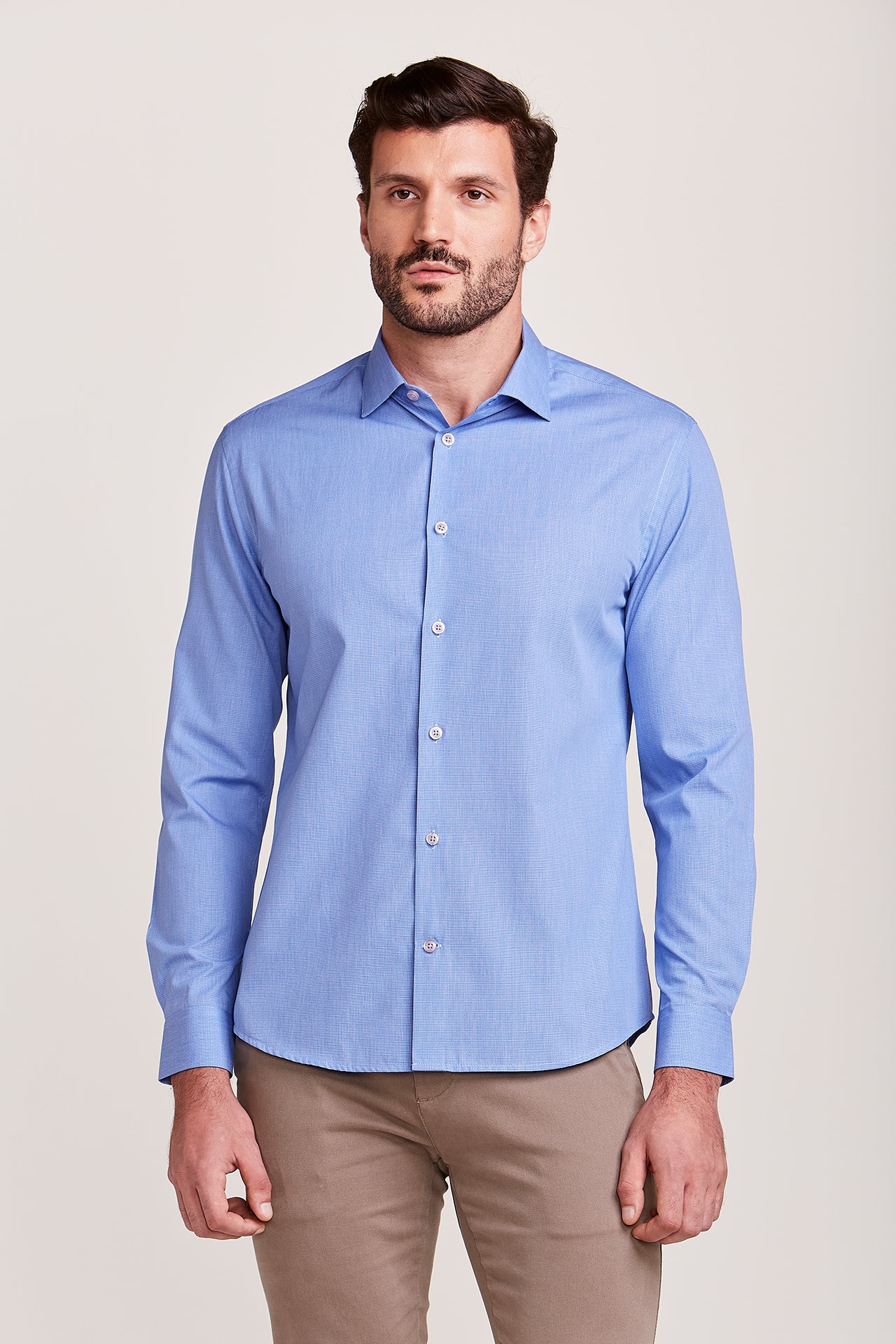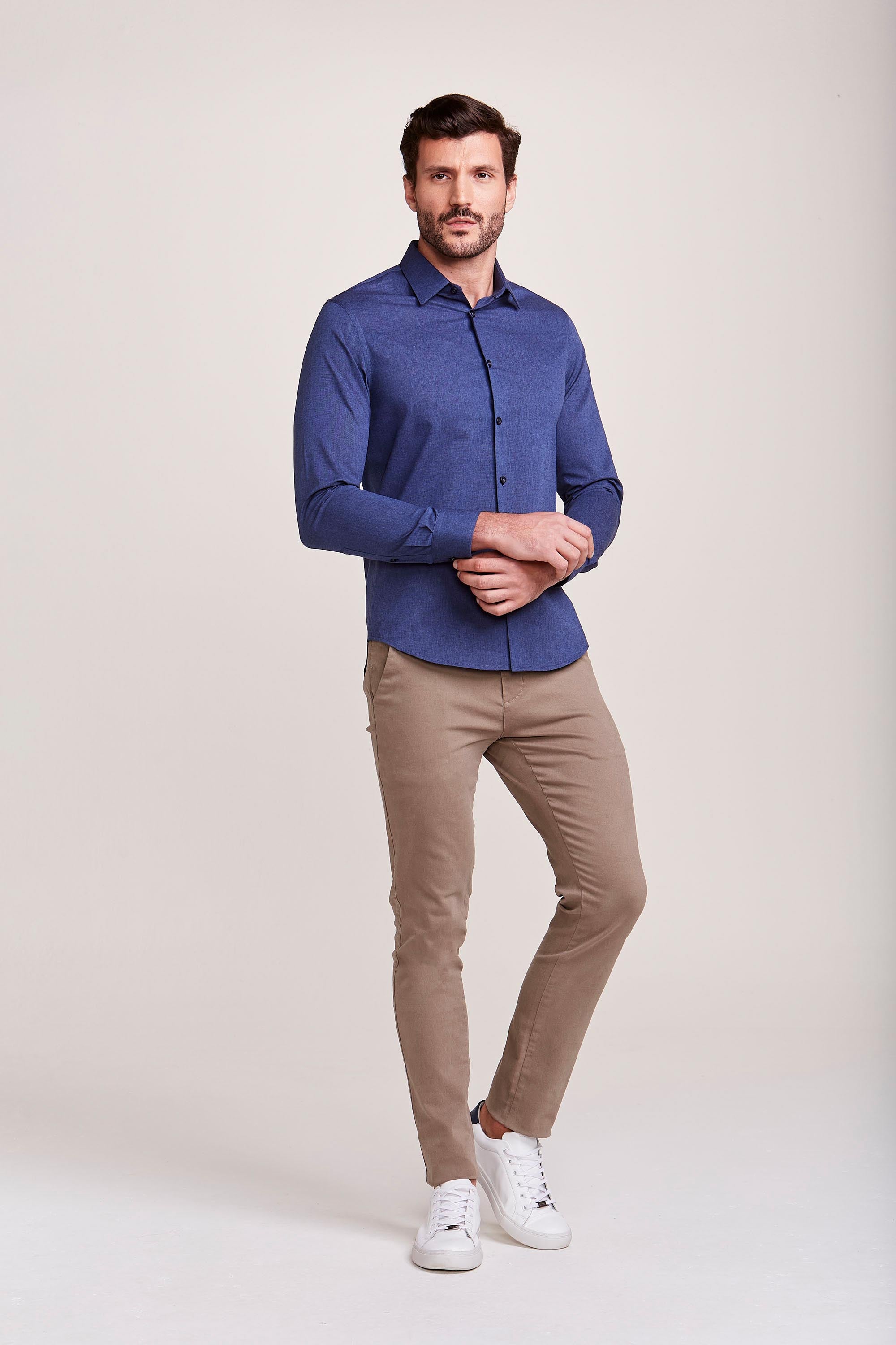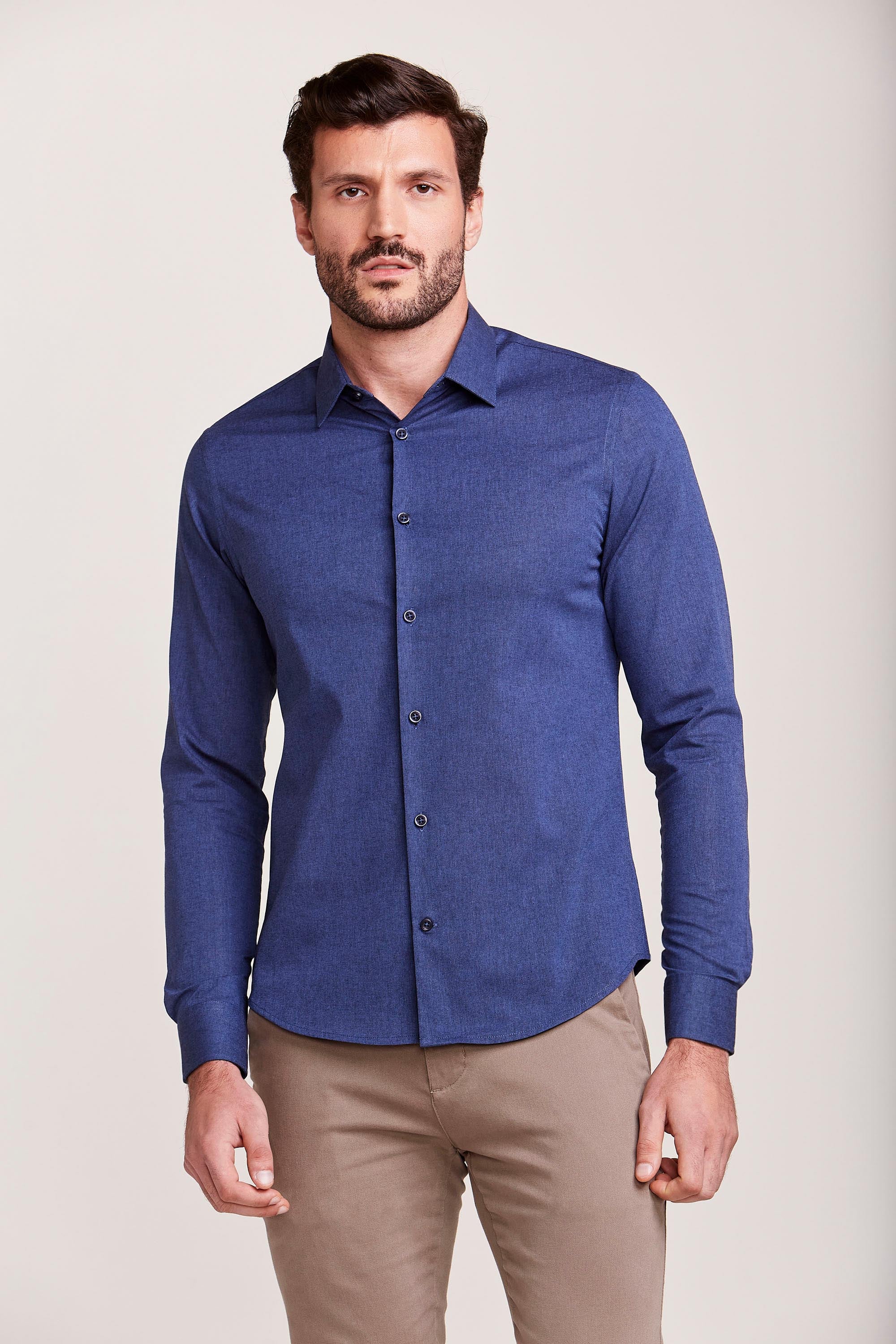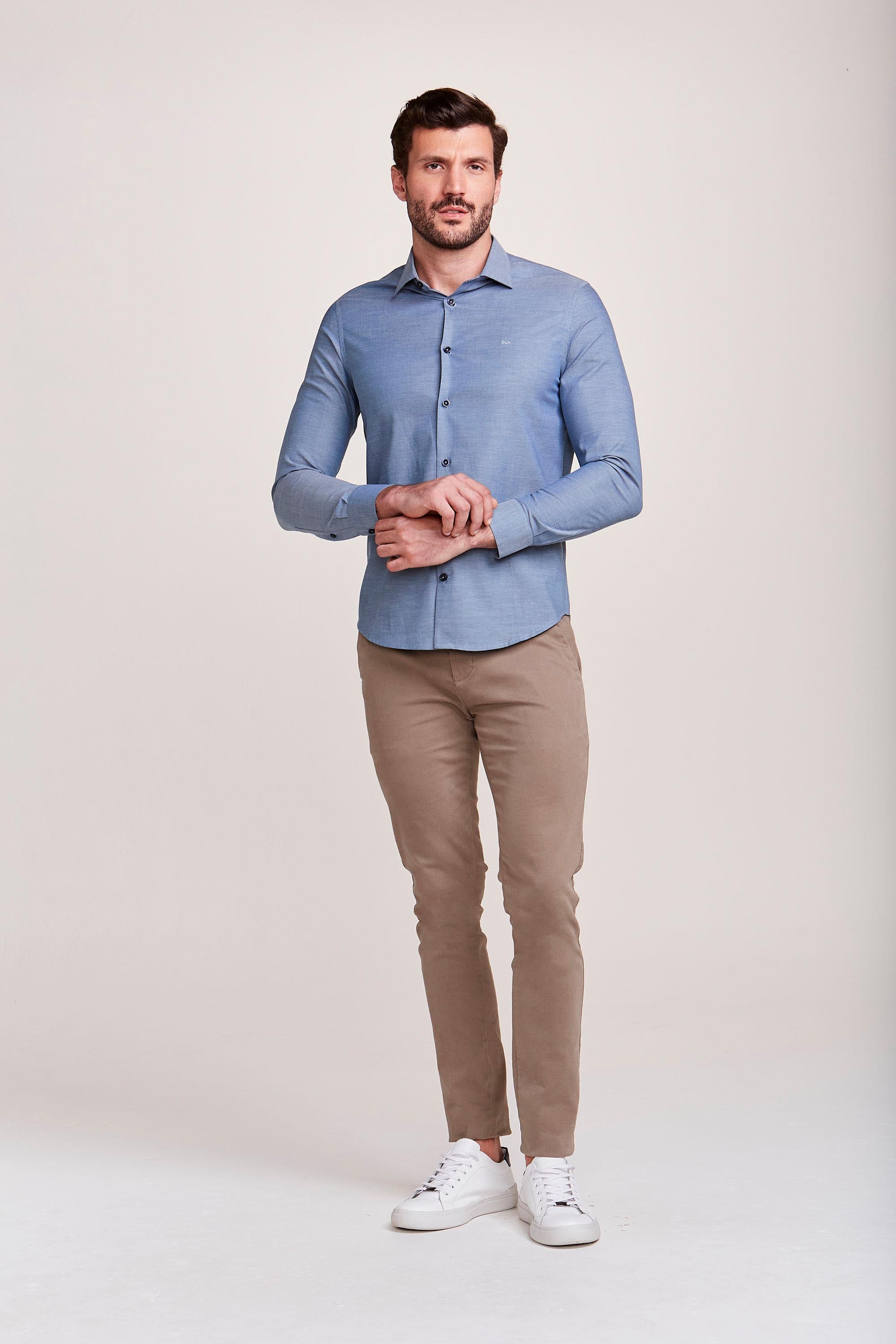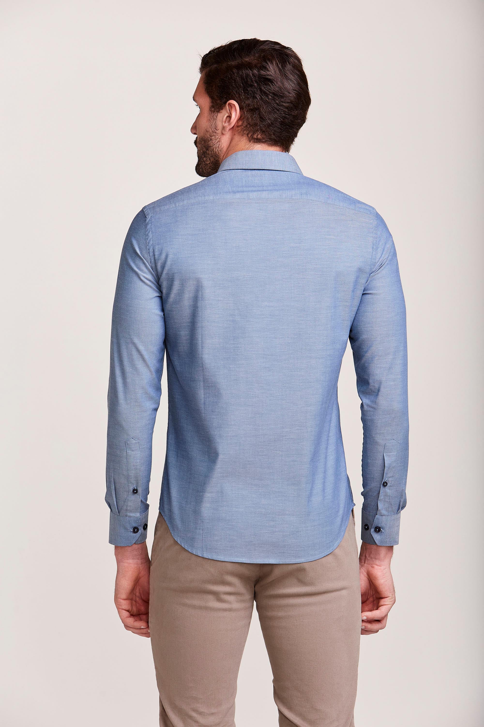 CAMISA M/L CONTEMPORÂNEA FIO TINTO AZUL