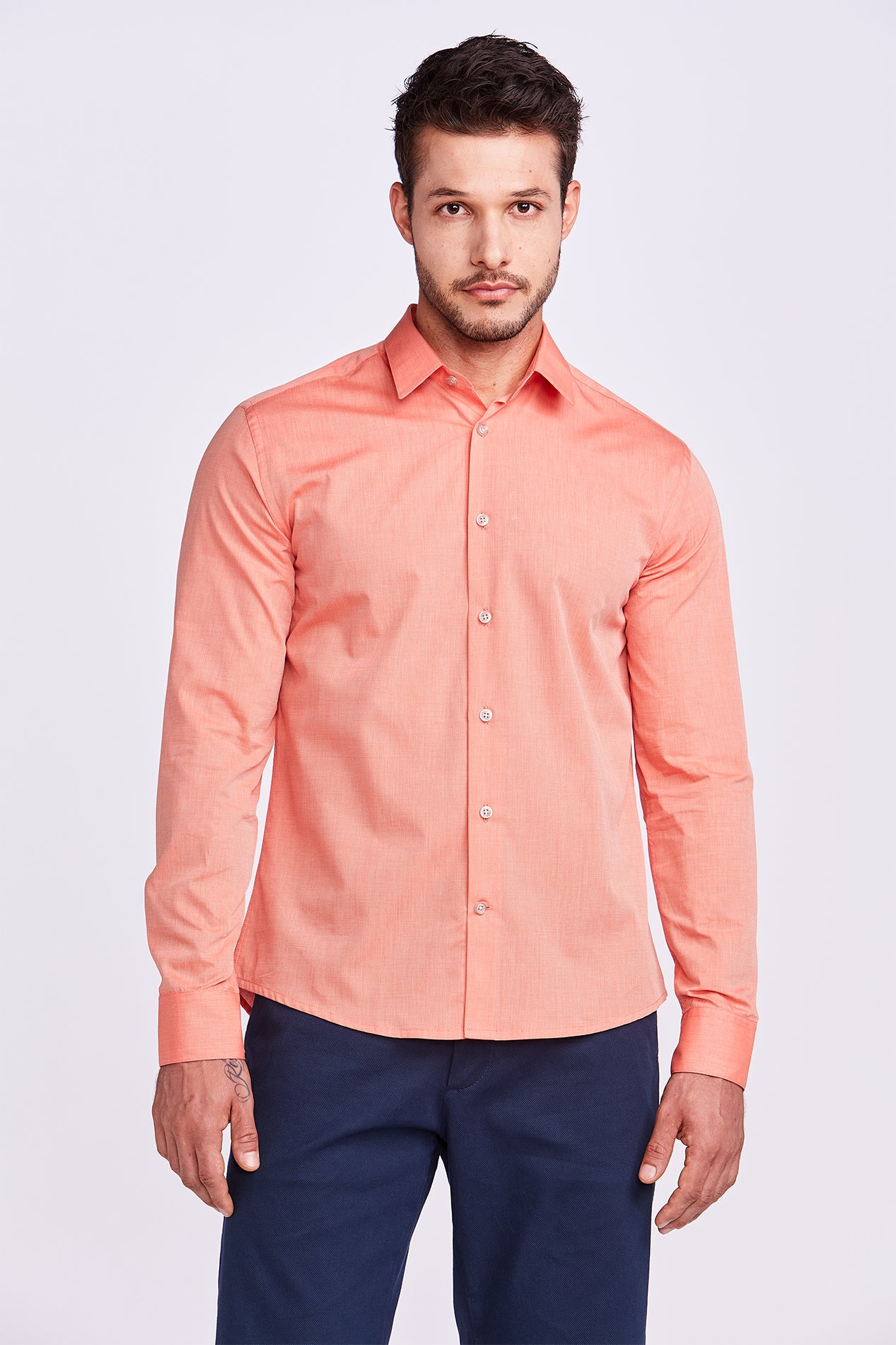 CAMISA M/L CONTEMPORÂNEA FIO TINTO LARANJA