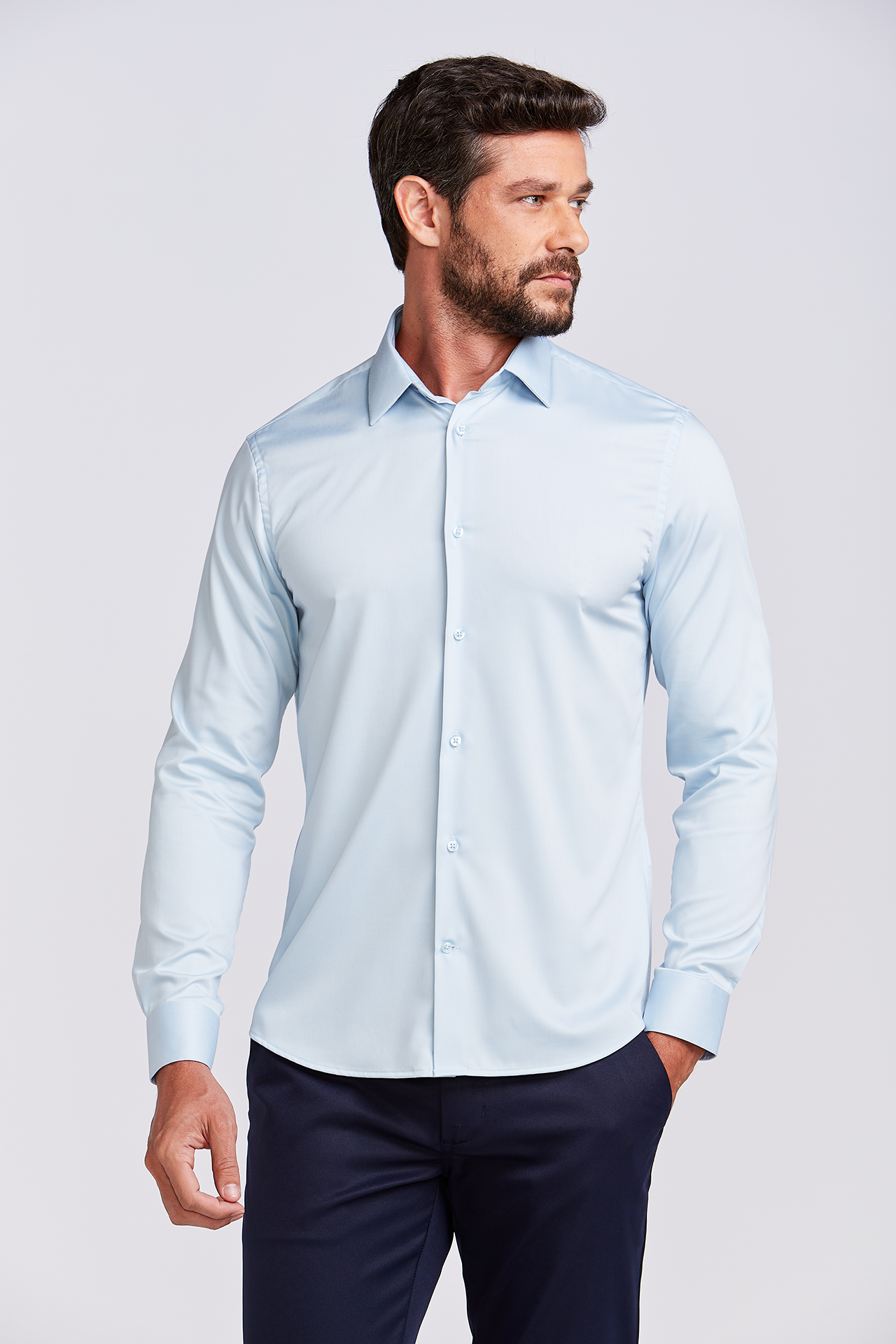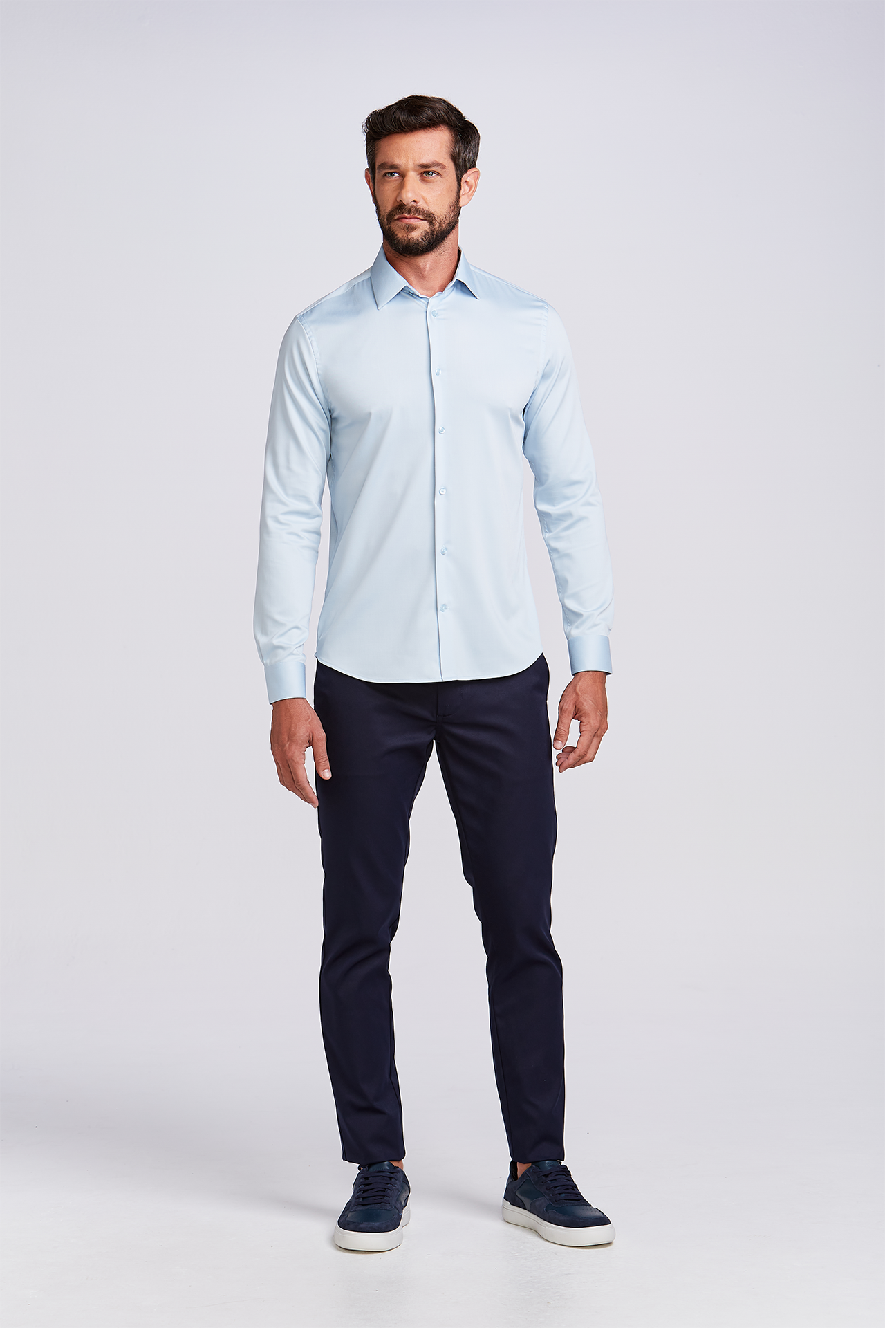 CAMISA CONTEMPORANEA M/L FIO TINTO AZUL