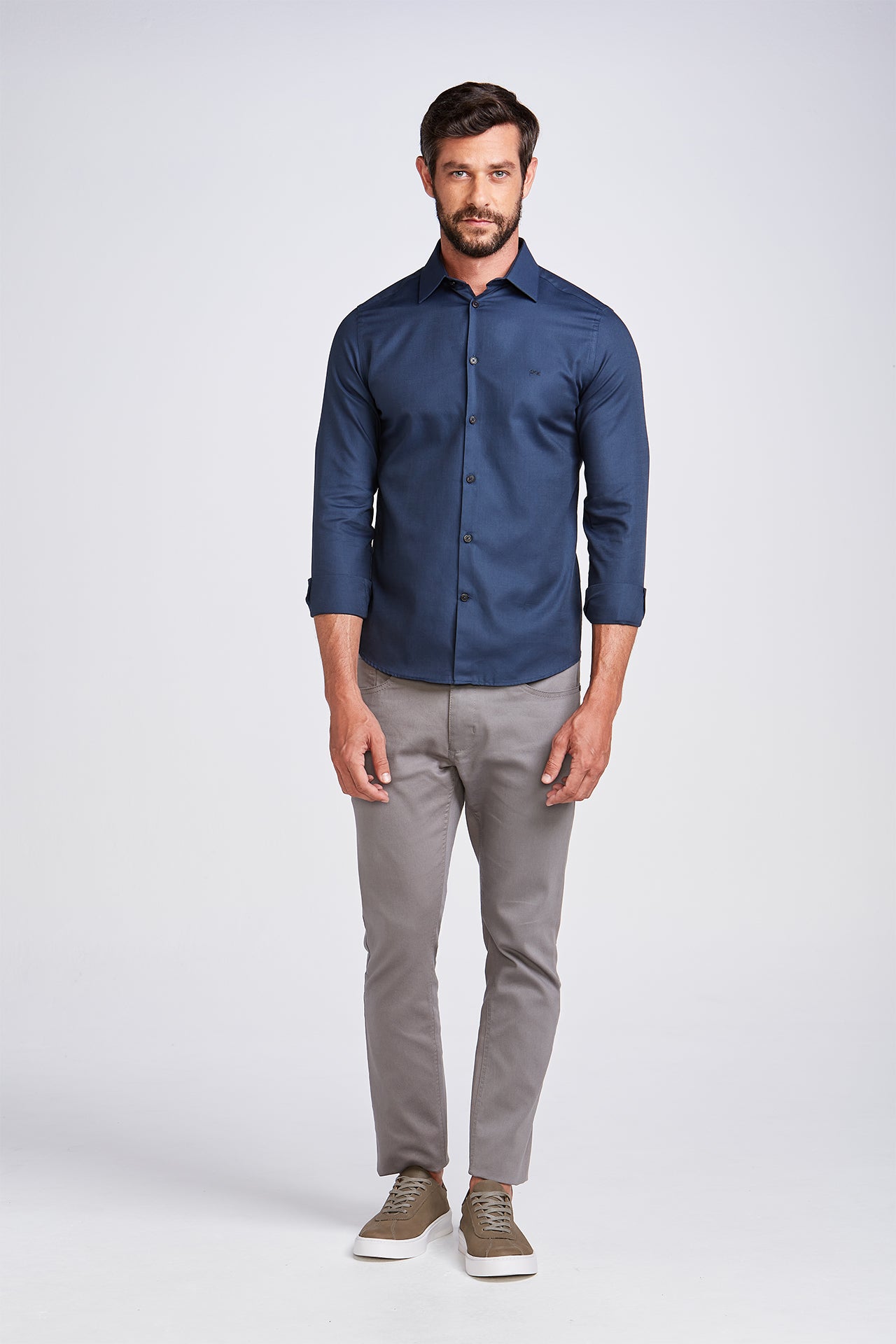 CAMISA M/L CONTEMPORANEO FIO TINTO AZUL ACINZENTADO