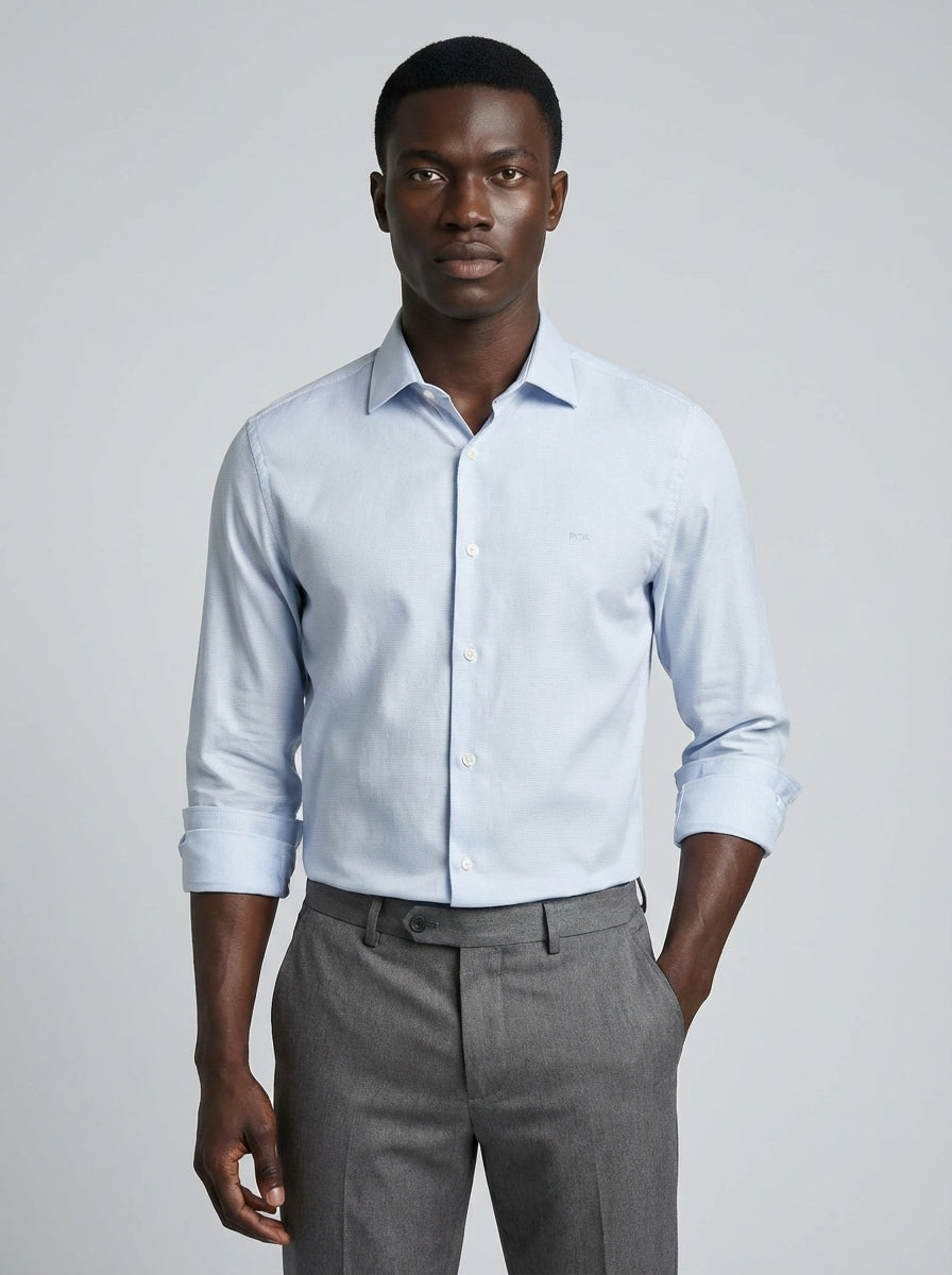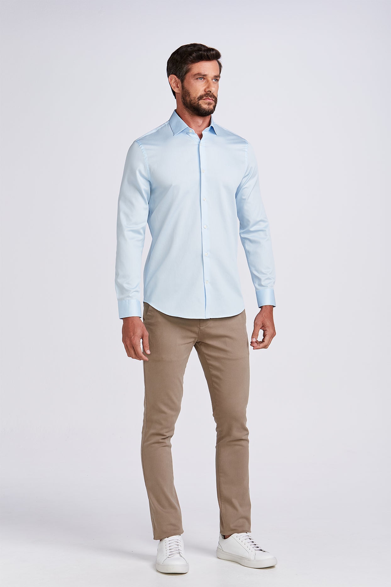 CAMISA M/L SOCIAL FALSO LISO AZUL CLARO