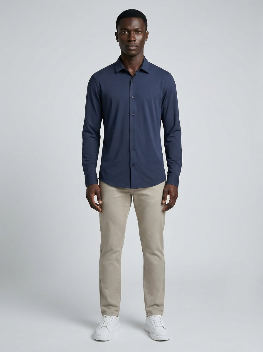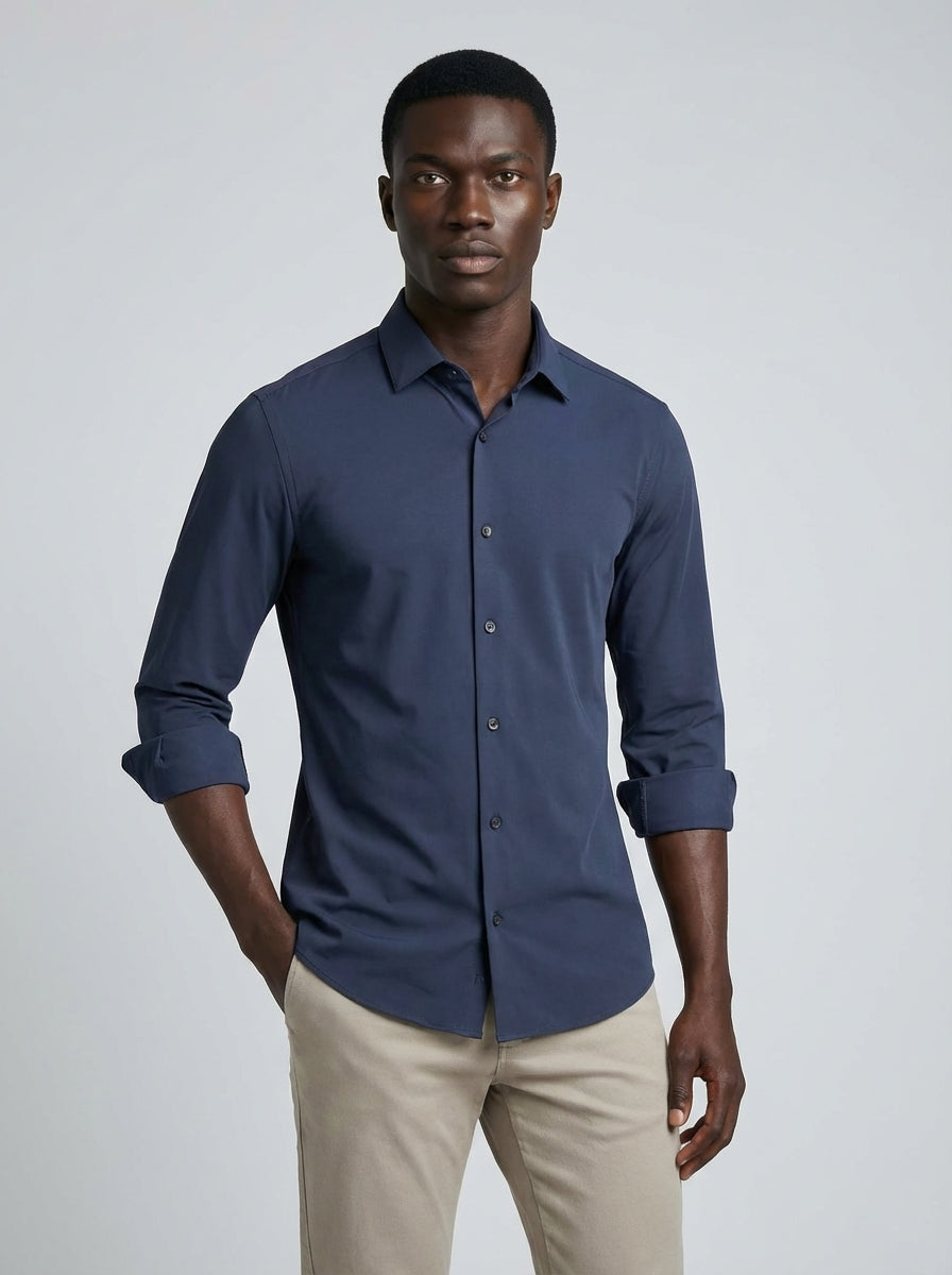 CAMISA MALHA CASUAL FALSO LISO MARINHO