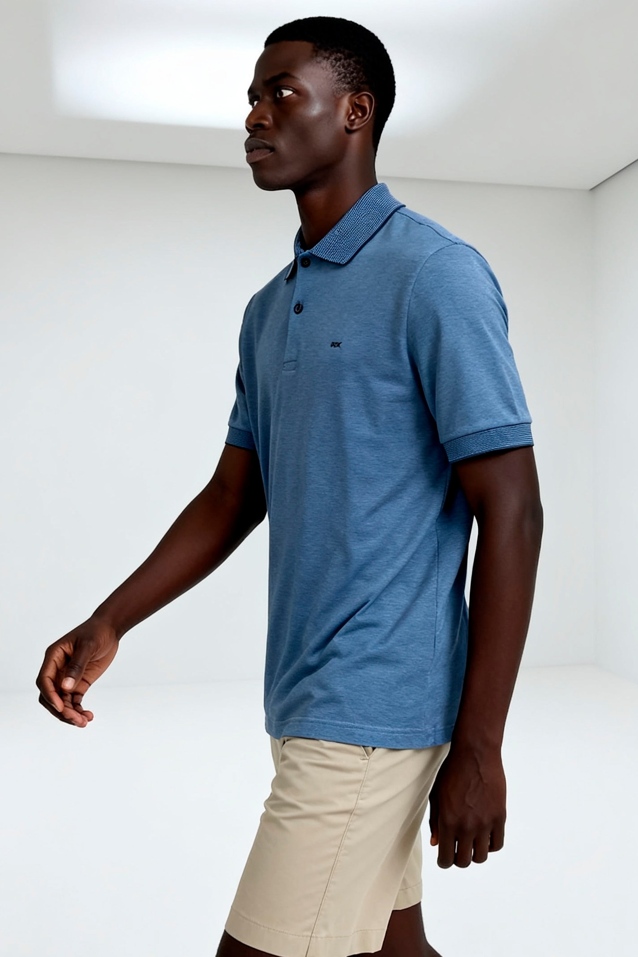 POLO MALHA LISTRADINHA AZUL
