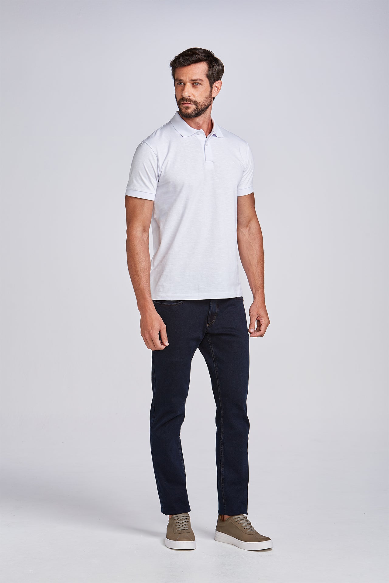 POLO M/C VISCO GOLA DIFERENCIADA BRANCO